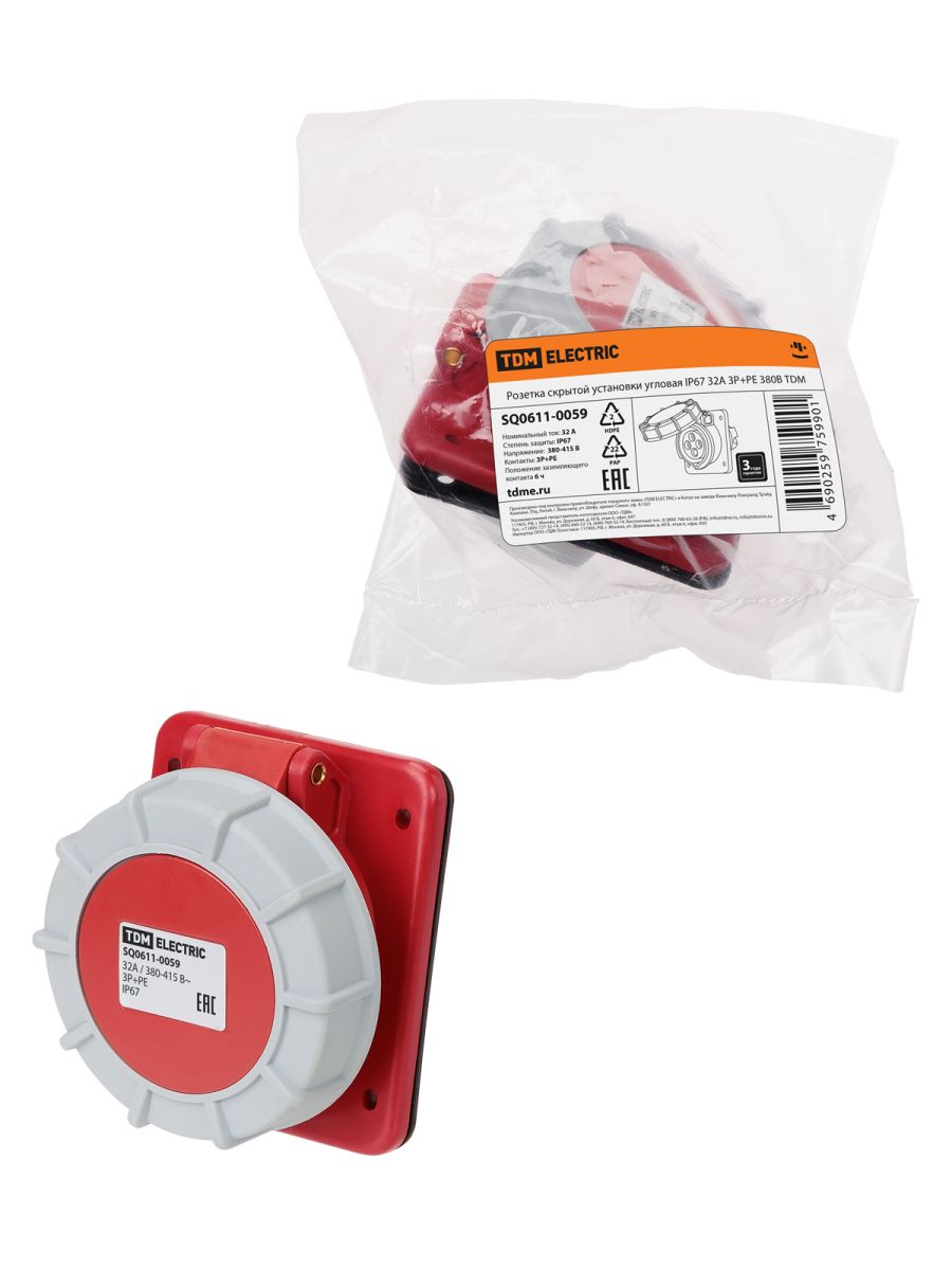 Читать все статьиРозетка скрытой установки угловая IP67 32А 3Р+РЕ 380В TDM