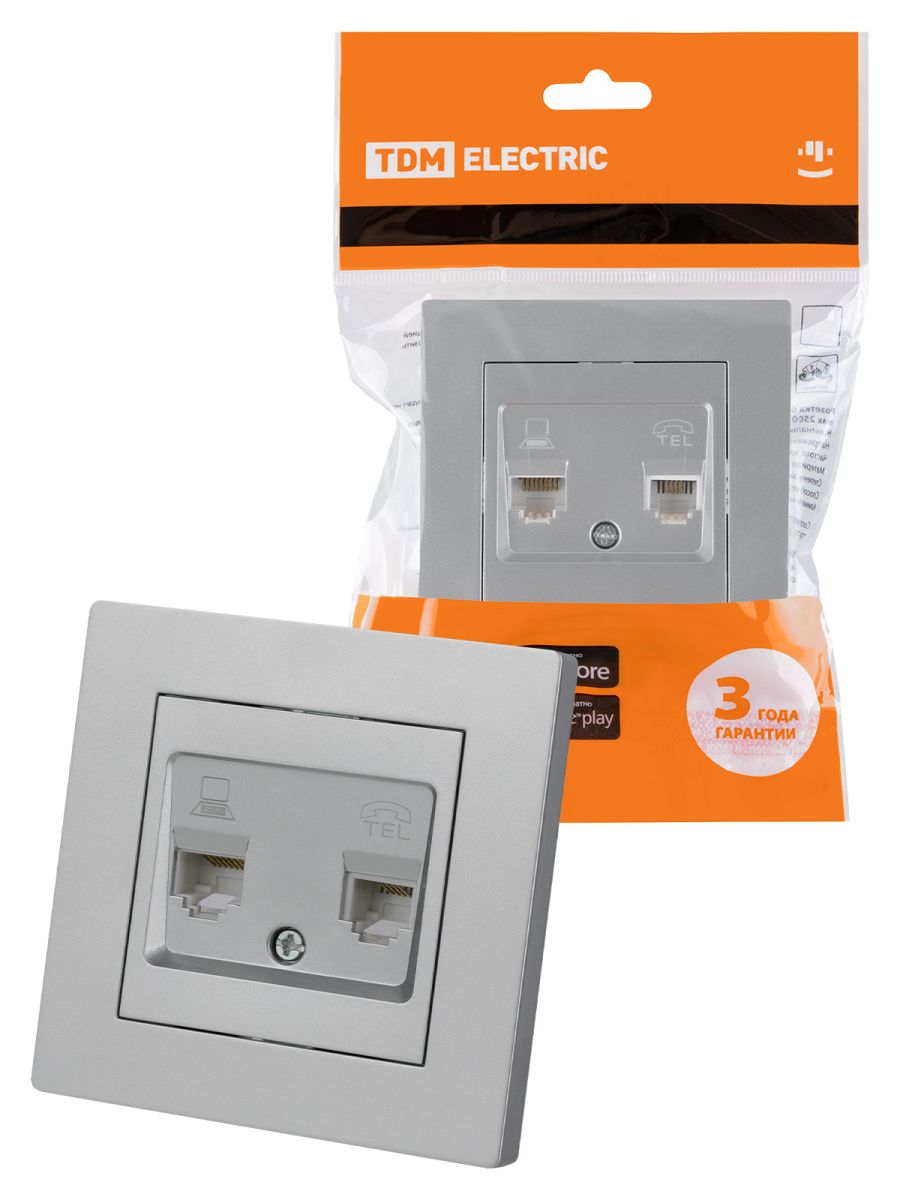 Розетка телефонная RJ11 + компьютерная RJ45 серебр. металлик «Сенеж» TDM