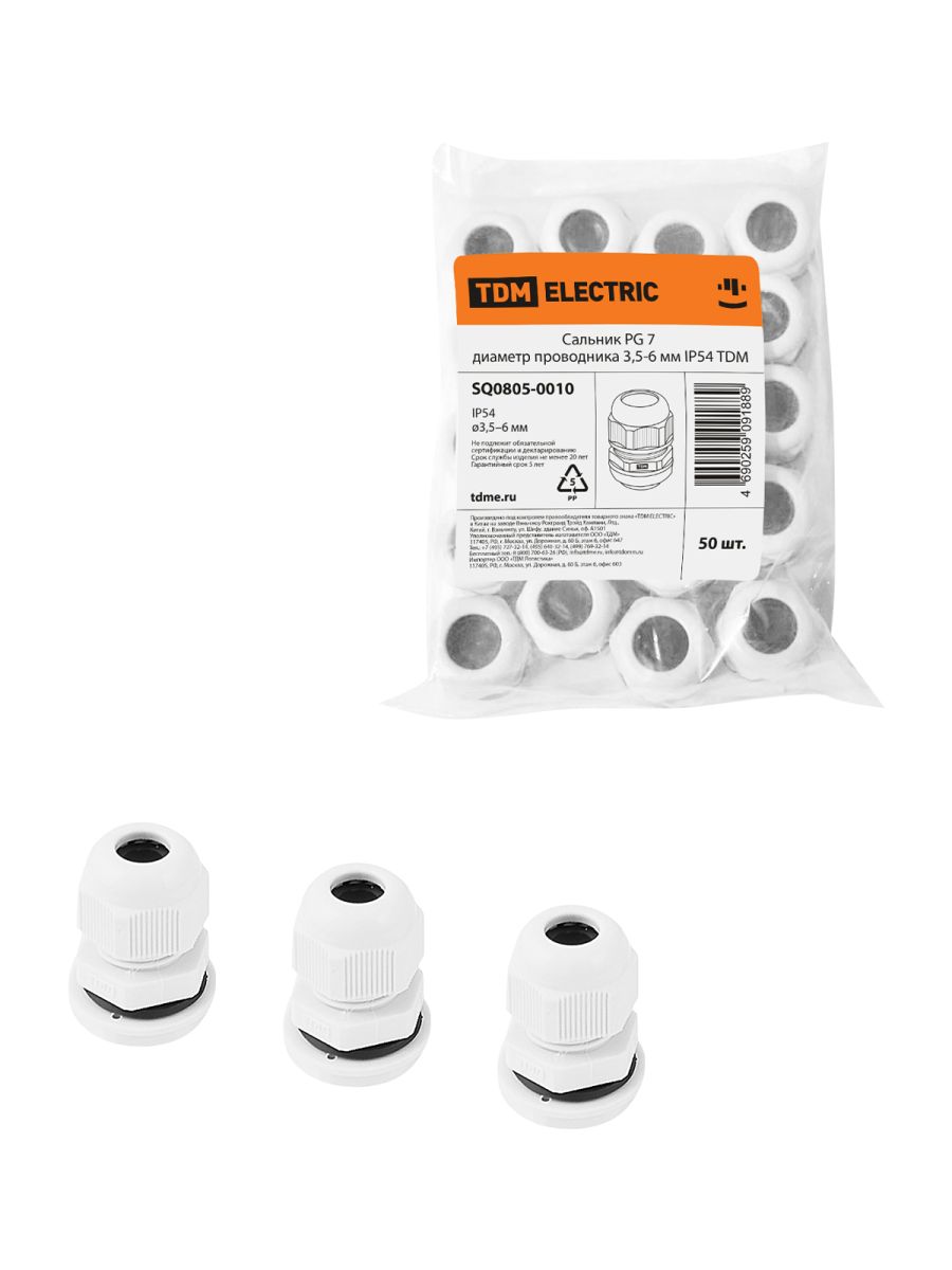 Читать все статьиСальник PG 7 диаметр проводника 3,5-6 мм IP54 TDM