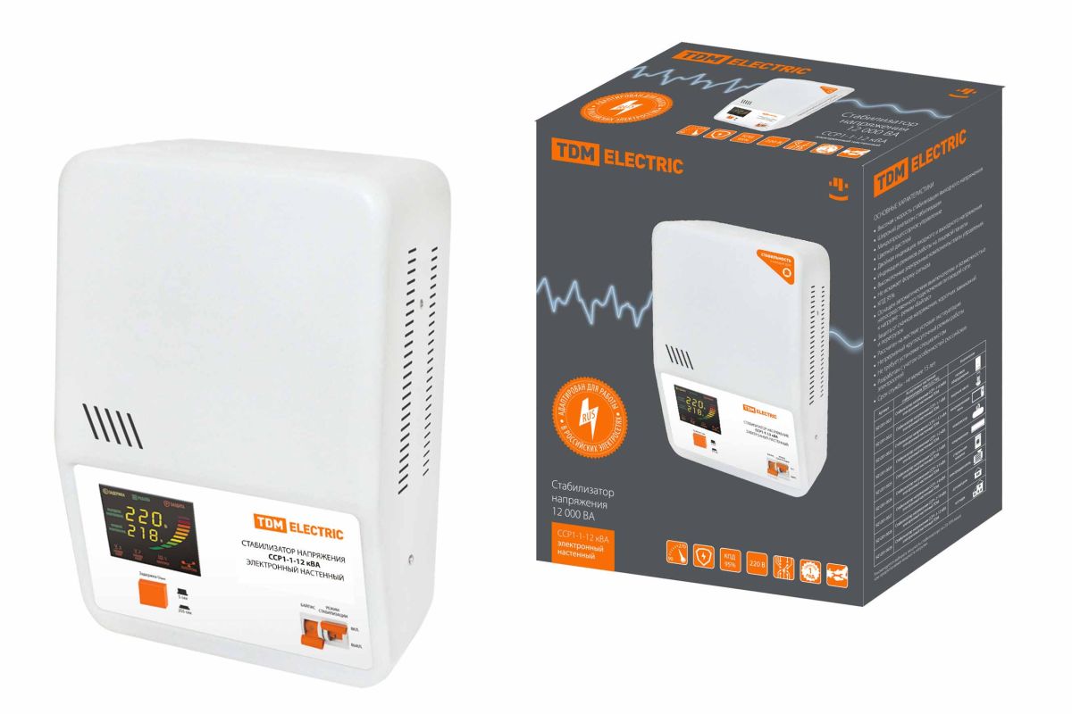 Читать все статьиСтабилизатор напряжения ССР1-1-12 кВА электронный настенный TDM