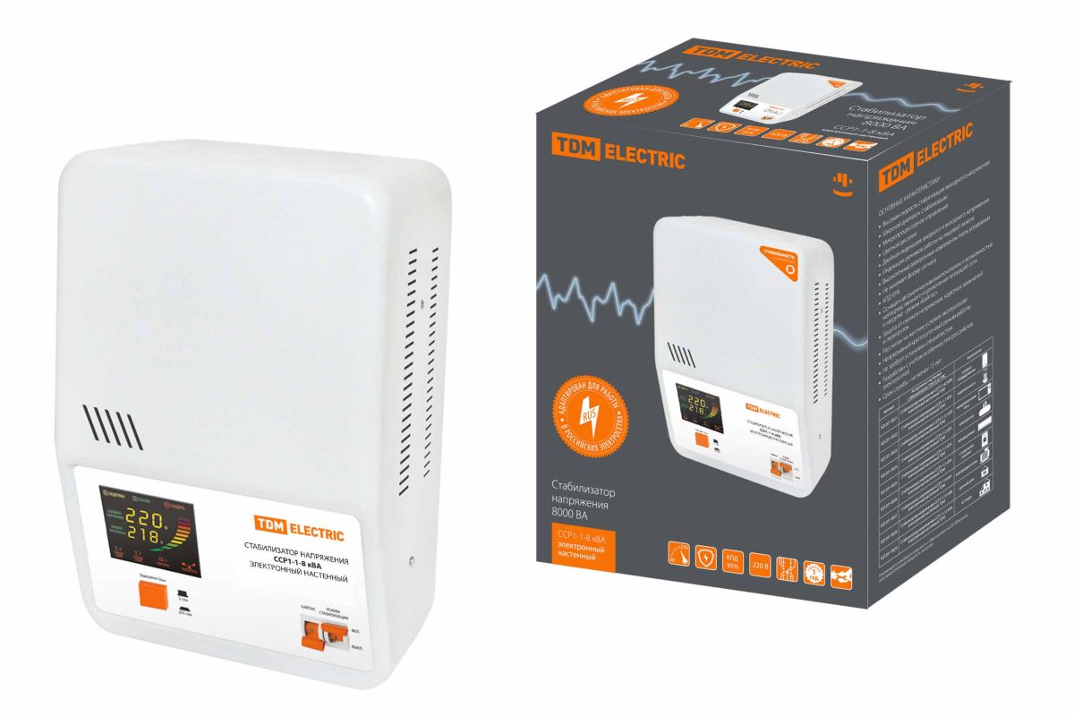 Читать все статьиСтабилизатор напряжения ССР1-1-8 кВА электронный настенный TDM