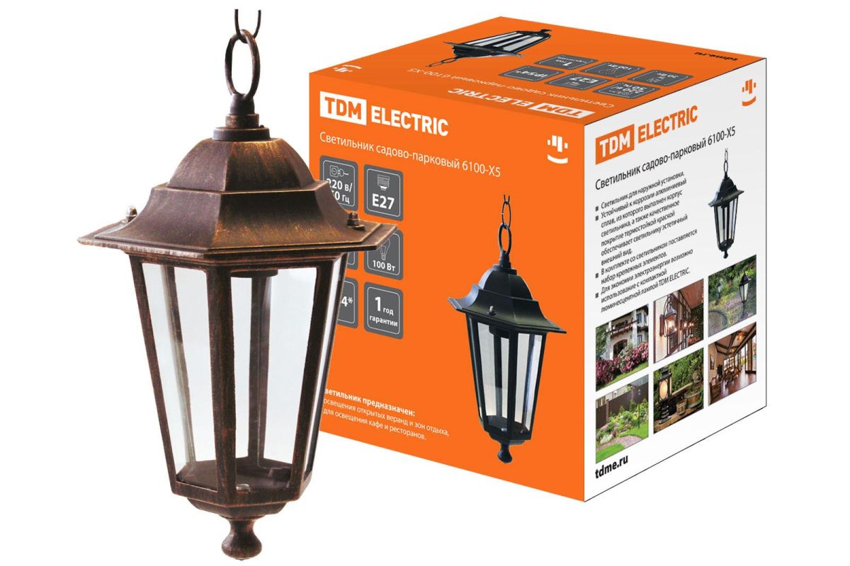 Читать все статьиСветильник 6100-15 садово-парковый шестигранник, 100Вт, подвес, бронза TDM