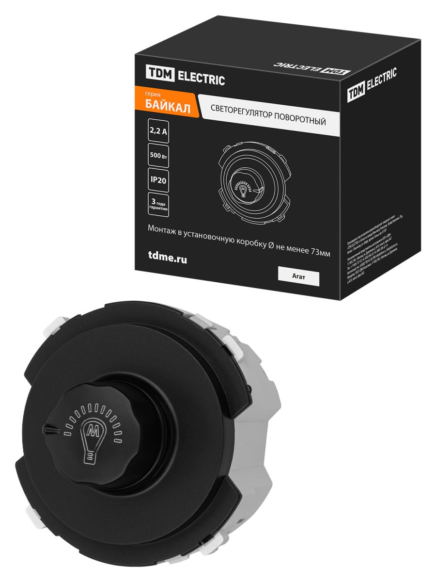 Светорегулятор (RL, 500Вт) поворотный агат, «Байкал» TDM