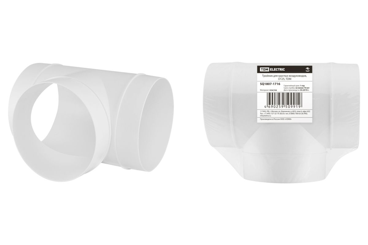 Тройник для круглых воздуховодов, D125, TDM