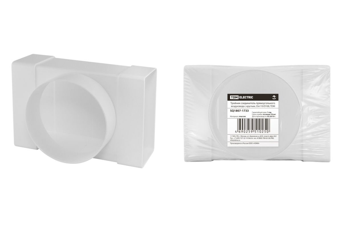 Тройник соединитель прямоугольного воздуховода с круглым, 55х110/D100, TDM