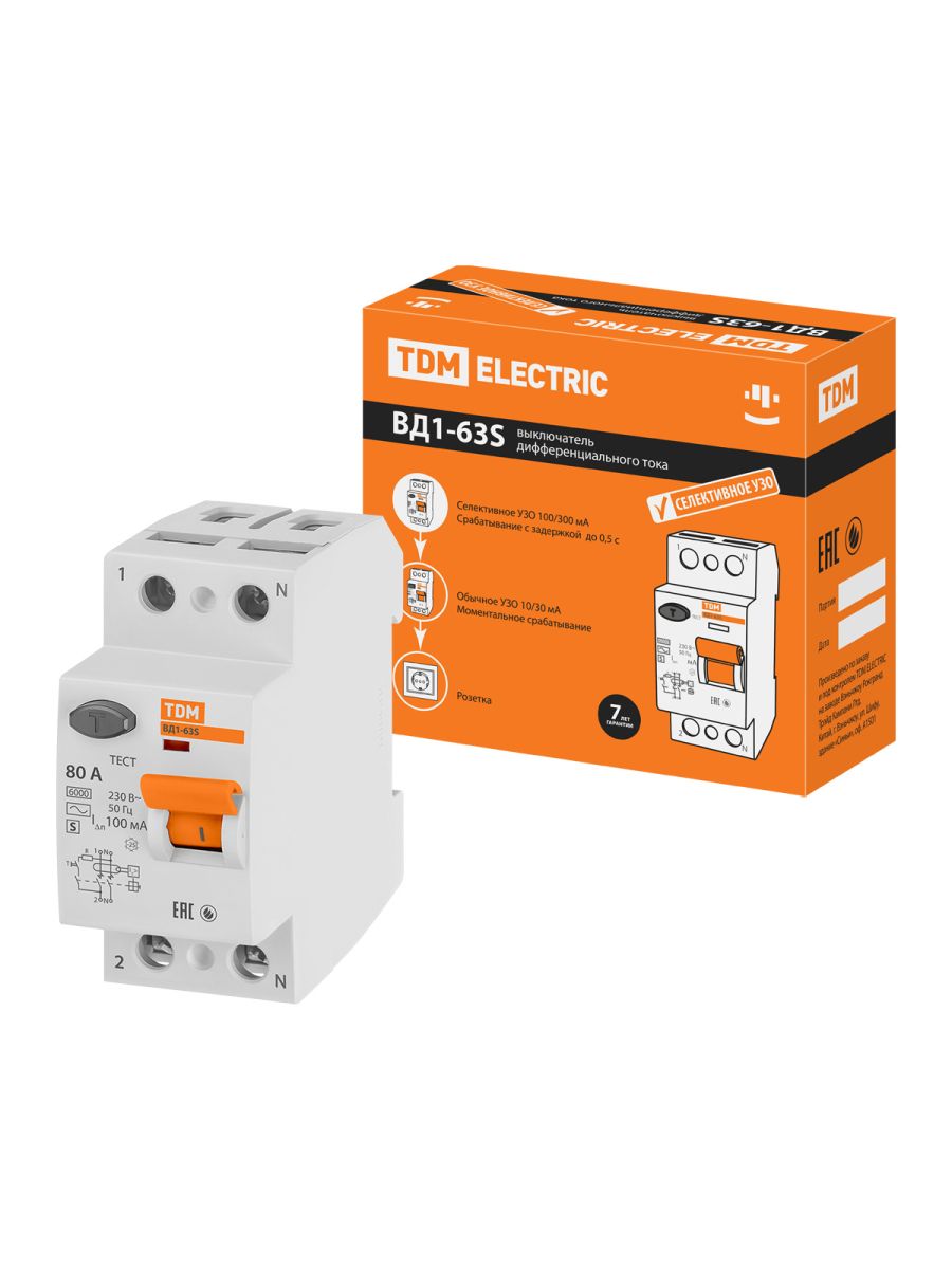 Читать все статьиУстройство защитного отключения ВД1-63S 2Р 80А 100мА TDM