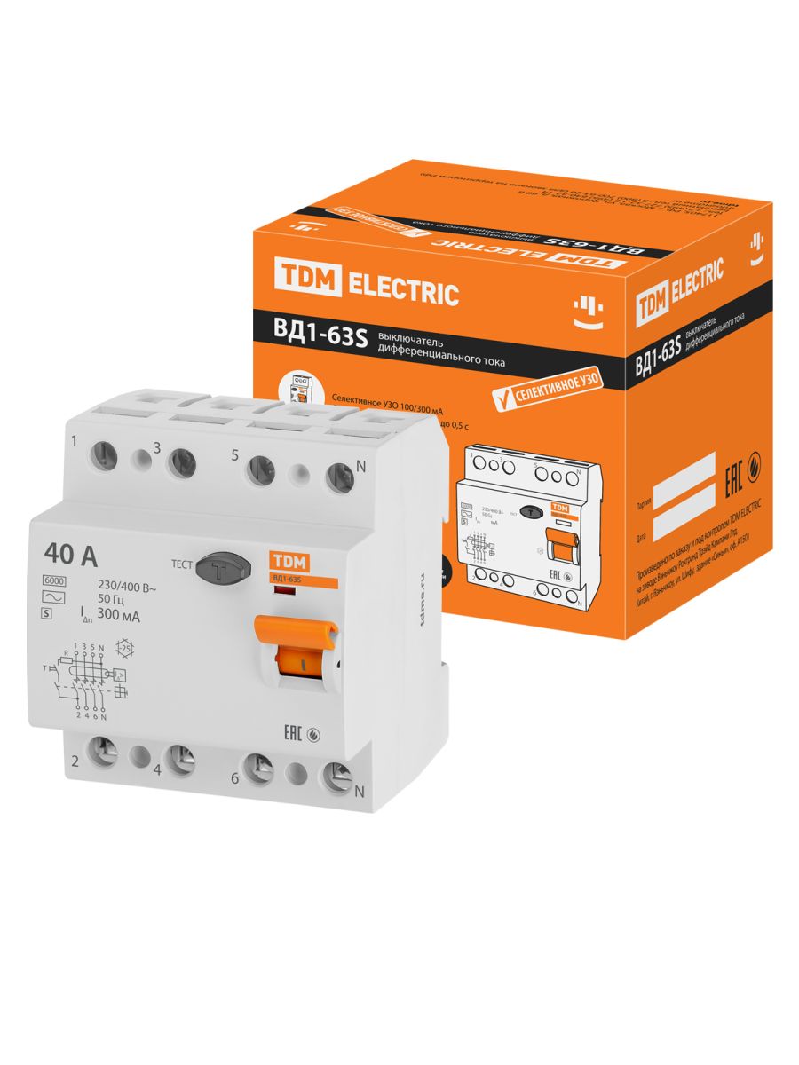 Читать все статьиУстройство защитного отключения ВД1-63S 4Р 40А 300мА TDM