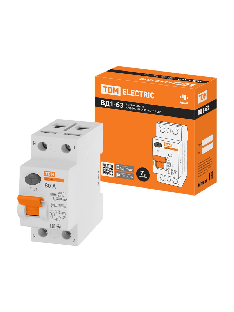 Читать все статьиУстройство защитного отключения ВД1-63 2Р 80А 300мА TDM