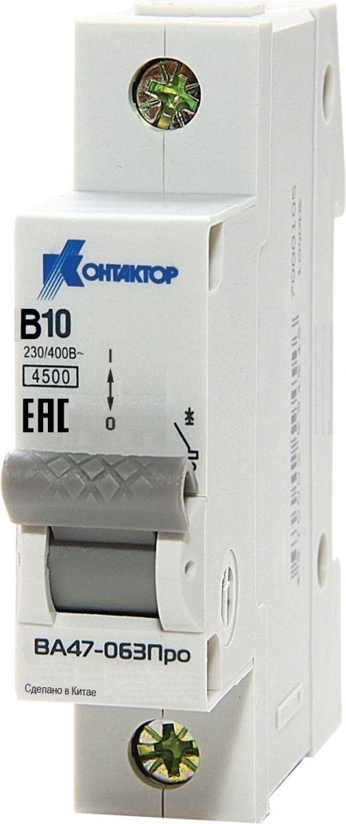 Выключатели ВА47-063Про предназначены для проведения тока в нормальном режиме и отключения тока при коротких замыканиях, перегрузках, а также для нечастых оперативных включений и отключений электрических цепей и рассчитаны для эксплуатации в электроустановках с номинальным напряжением до 400 В переменного тока частоты 50 Гц.