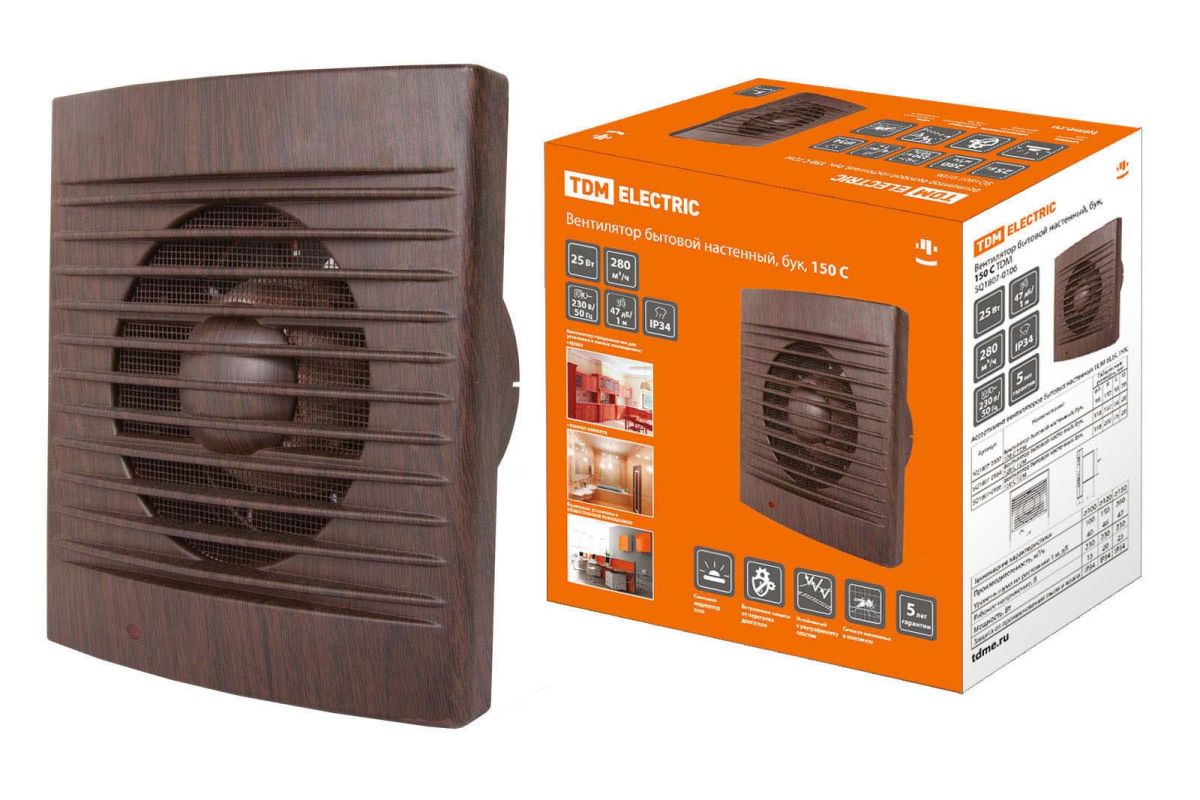 Читать все статьиВентилятор бытовой настенный, 150 С «ЭКО» (бук) TDM