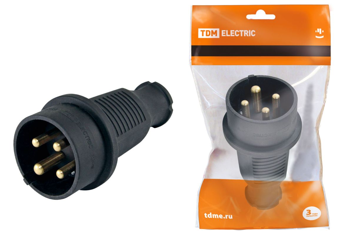 Читать все статьиВилка прямая каучук 3Р+РЕ 32А 380В IP44 TDM