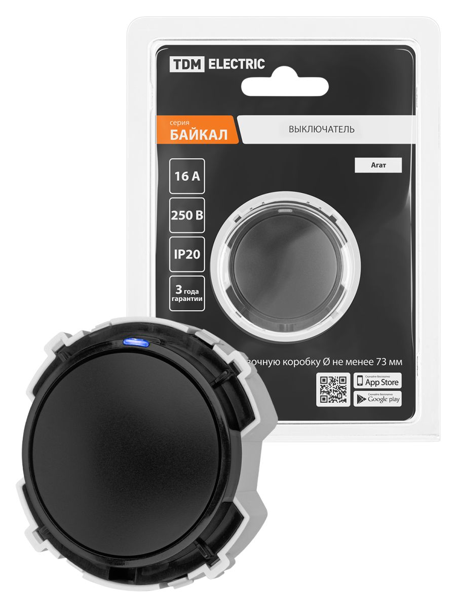 Выключатель 1-кл. 16А 250В кнопочный механизм агат, «Байкал» TDM