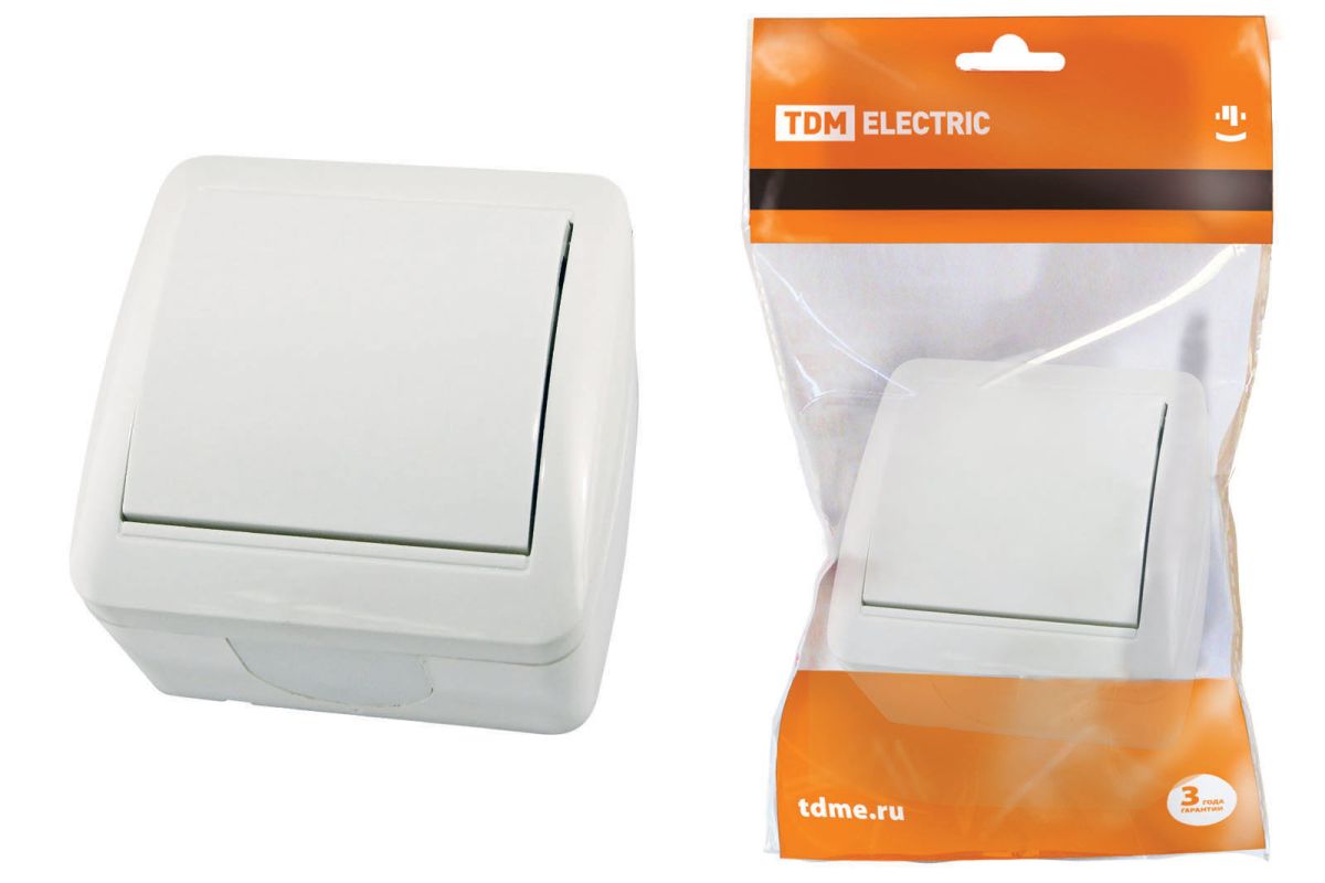 Читать все статьиВыключатель 1-кл. открытой установки IP44 10А белый «Селигер» TDM