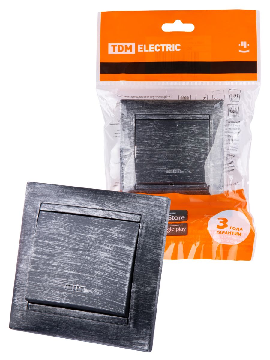 Выключатель 1 кл. с подсветкой 10А старинное серебро «Лама» TDM