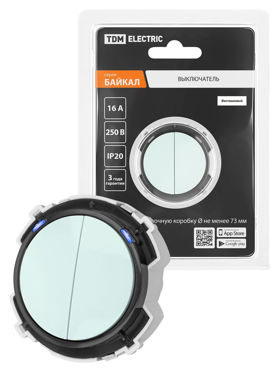 Выключатель 2-кл. 16А 250В кнопочный механизм фисташковый, «Байкал» TDM
