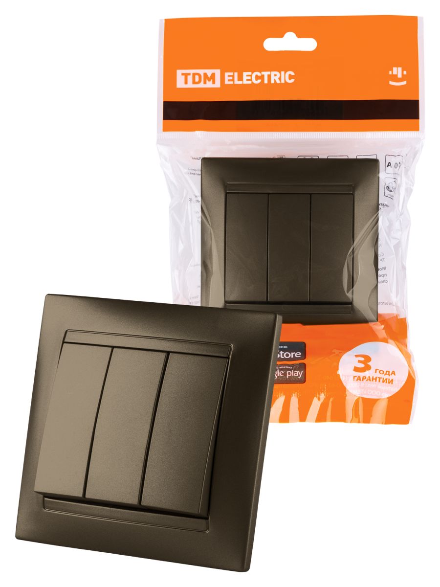 Выключатель 3-х кл. 10А бронза «Лама» TDM