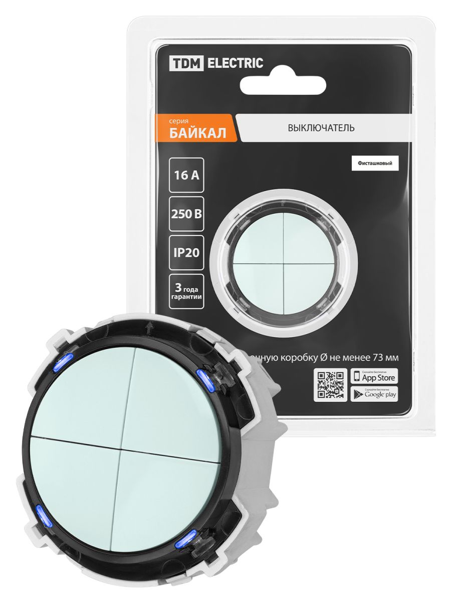 Выключатель 4-кл. 16А 250В кнопочный механизм фисташковый, «Байкал» TDM