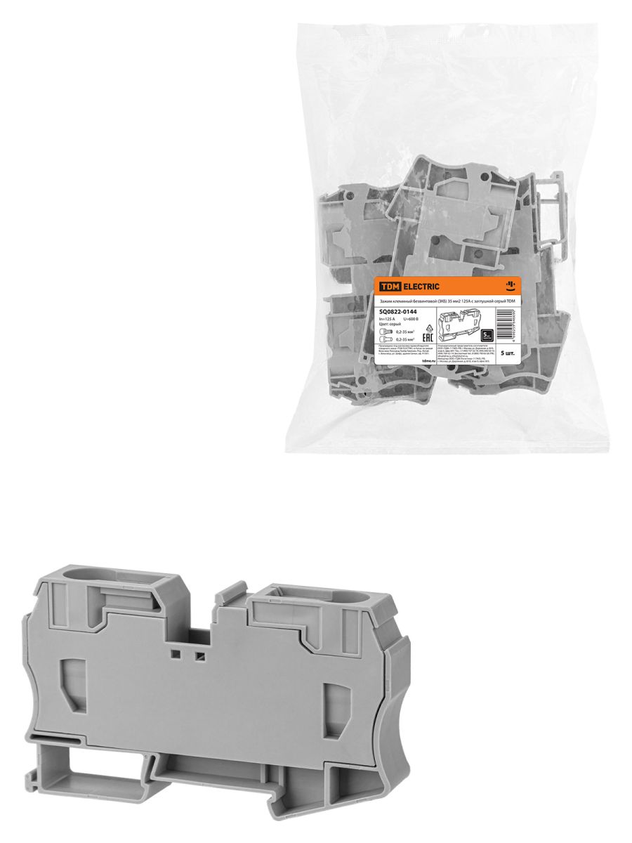 Зажим клеммный безвинтовой (ЗКБ) 35мм2 125А с заглушкой серый TDM