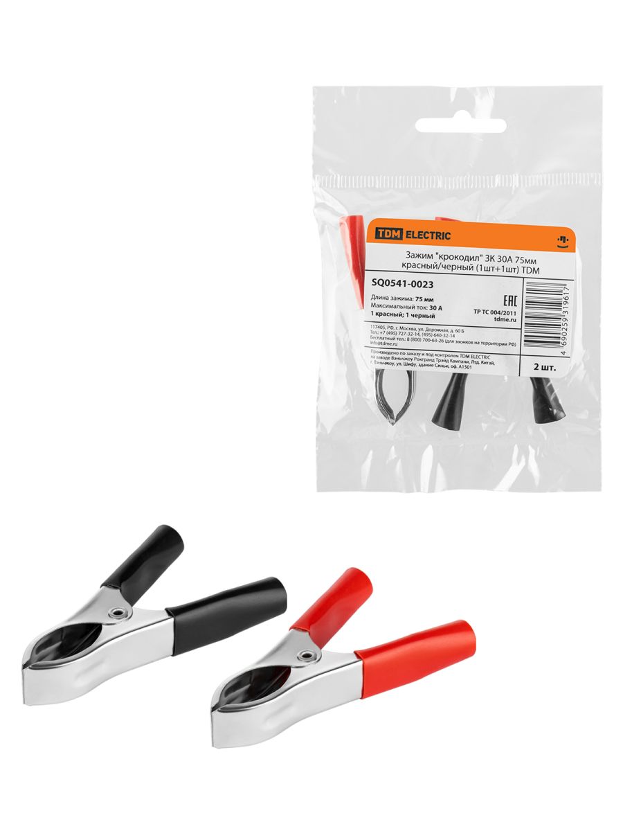Читать все статьиЗажим «крокодил» ЗК 30А 75мм красный/черный (1шт+1шт) TDM